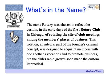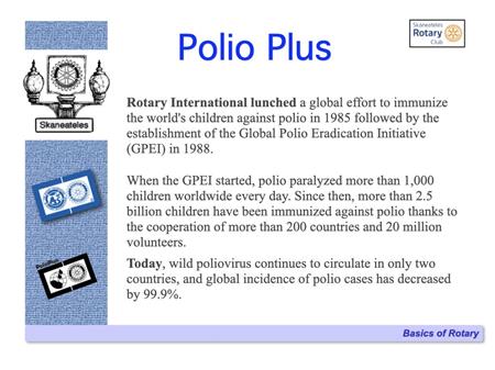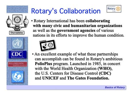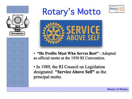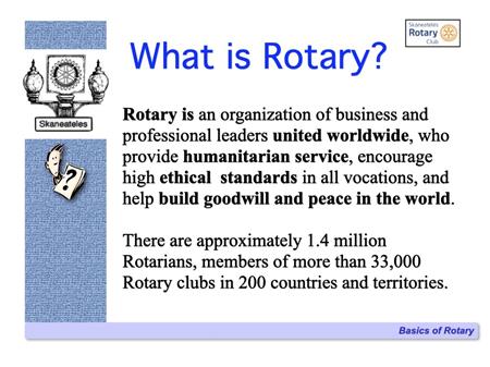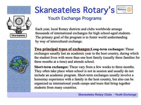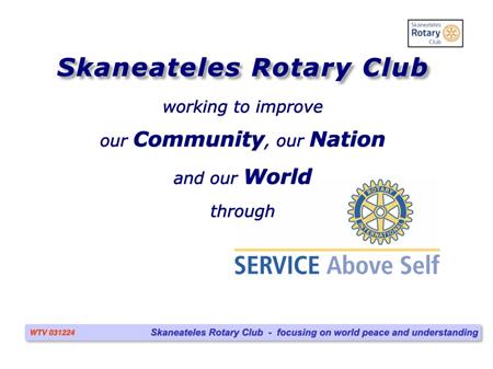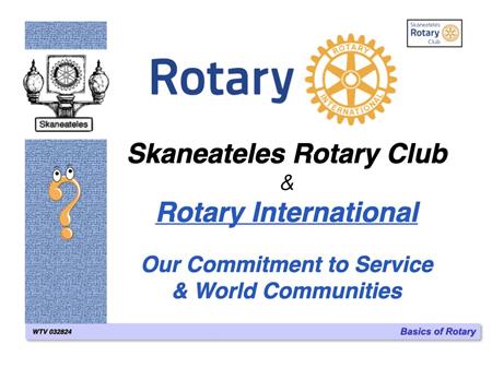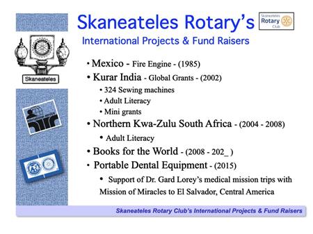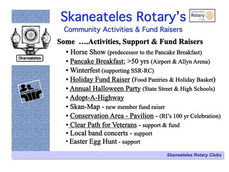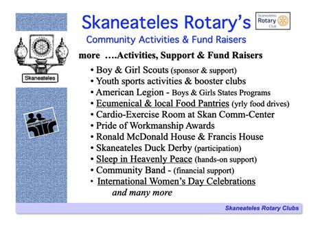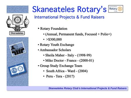 The following slides describe Rotary International and the Skaneateles Rotary Club, and references many of the club's local & international activities and projects.